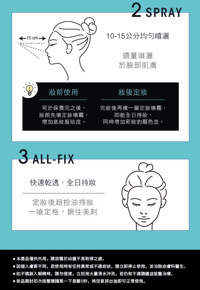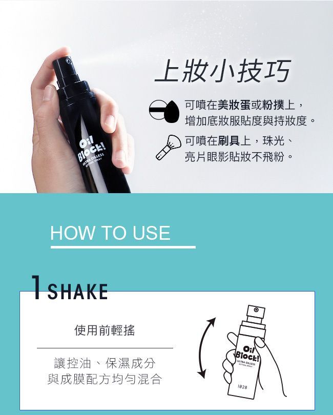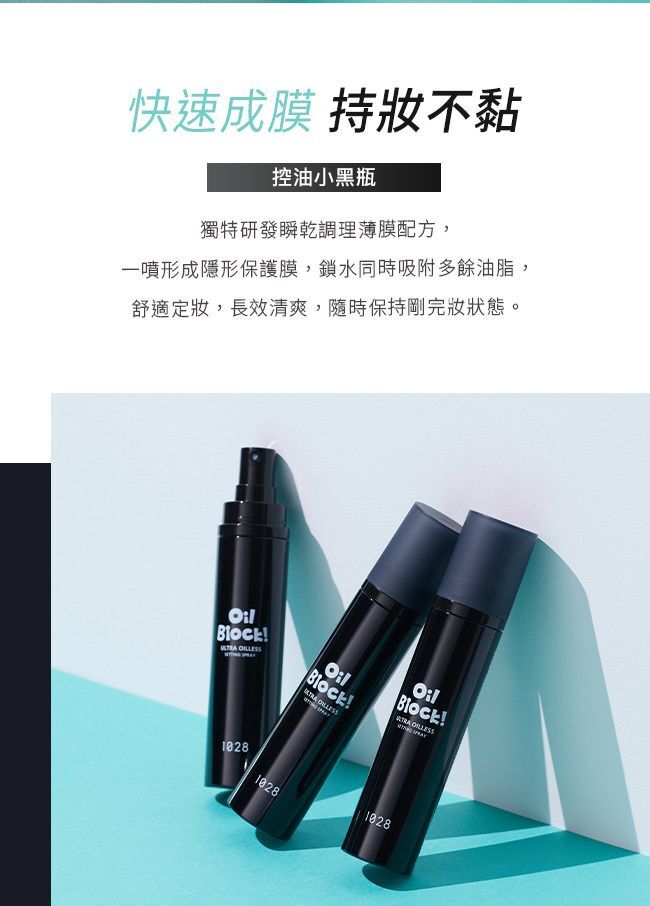 • 一噴定格成膜,對抗油光脫妝