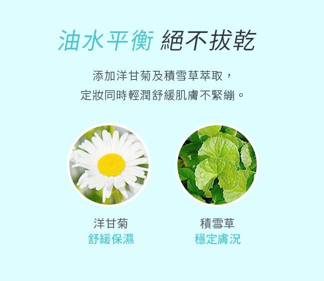 • 添加保濕萃取,定妝同時油水平衡不拔乾