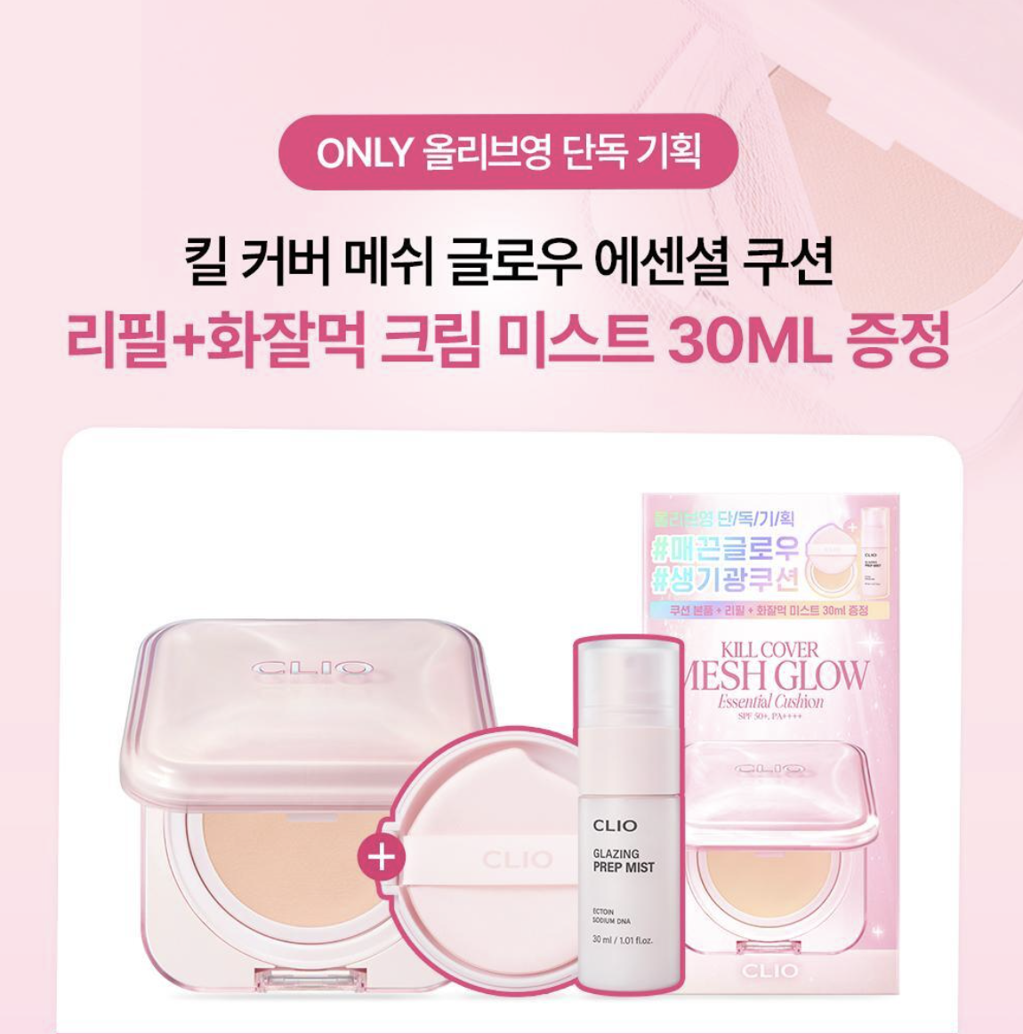 【30/11 - 6/12 韓國連線OY大促銷】Clio 網光亮肌精華氣墊粉餅 15g*2ea Set with prep mist 30ml
