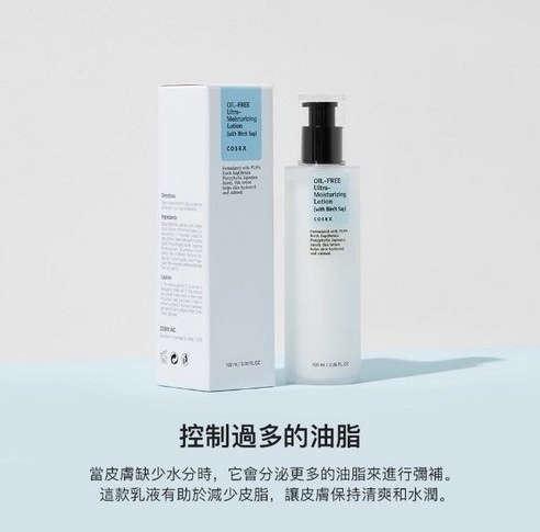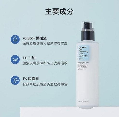今次COSRX 白樺樹無油超保濕乳含有 70% 白樺樹汁 ,