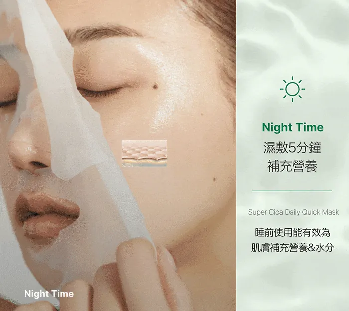 🌛在夜間肌膚吸收力提升時敷上面膜有助於肌膚補水及補充營養