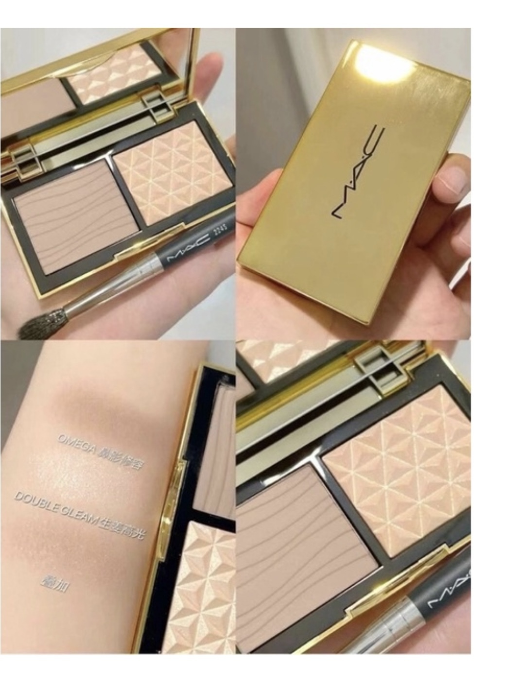 M·A·C 的聚光塑影立體修容盤 (Sculpt & Glow Duo / Contour & Highlight Palette) 是一款結合了暢銷高光色號 Double Gleam 和修容色號 Omega 的雙色修容盤,旨在輕鬆雕塑臉部輪廓