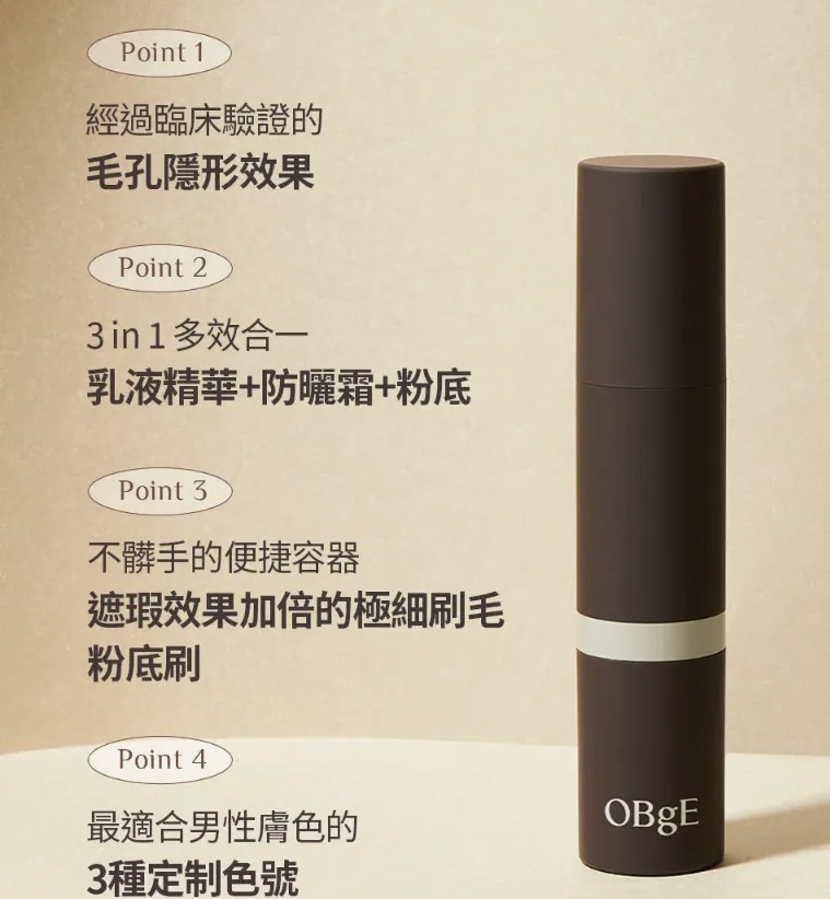 主打「保養+防曬+粉底」三合一的男士彩妝產品,