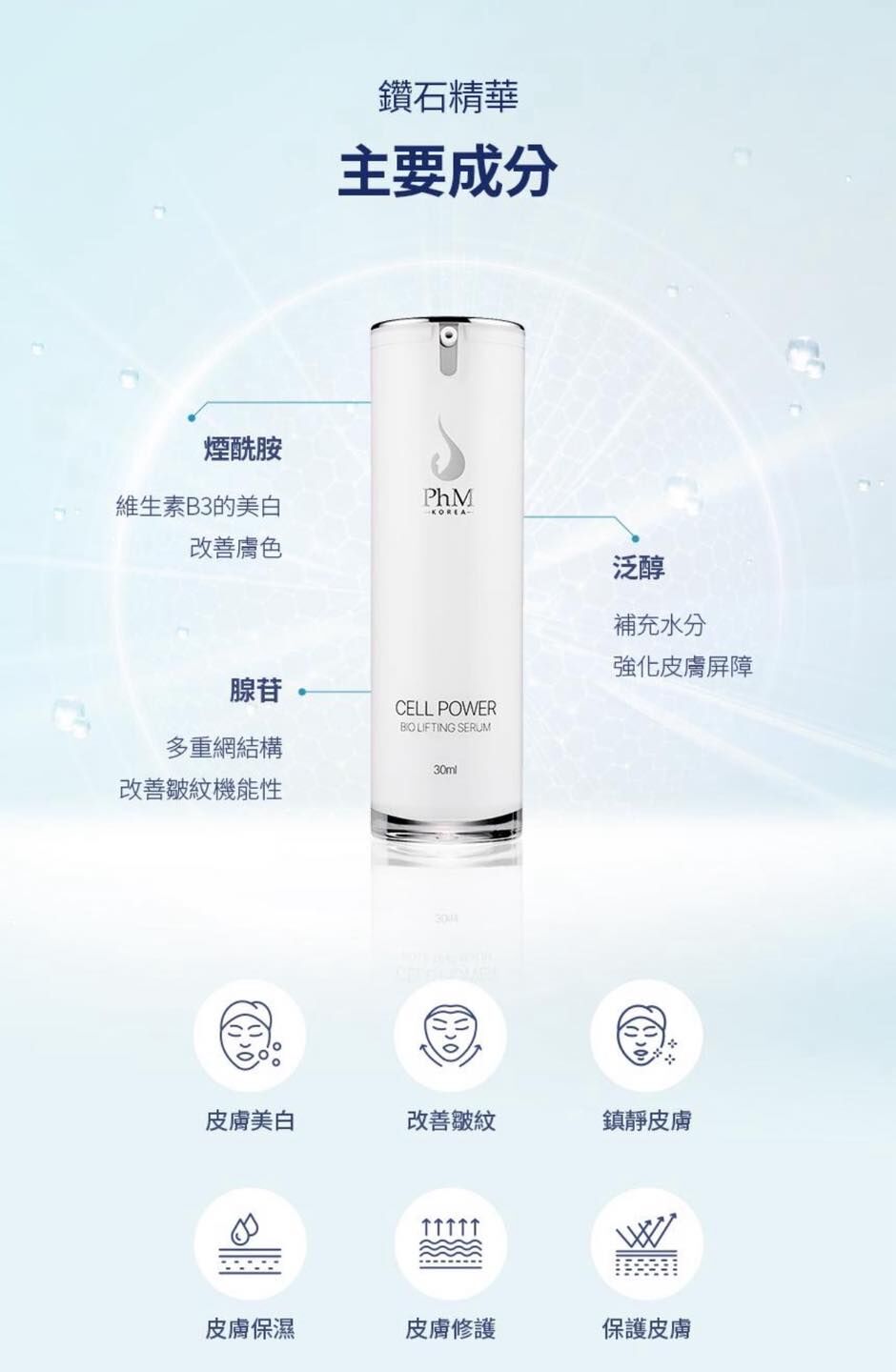 💧皮膚再生、保濕、改善皺紋、美白及鎮靜消炎