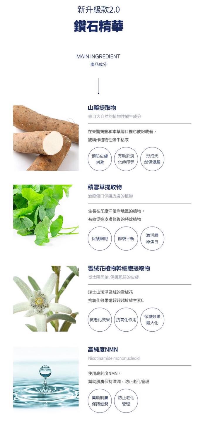 其他成份 : 山藥提取物 、積雪草提取物及人參果提取物