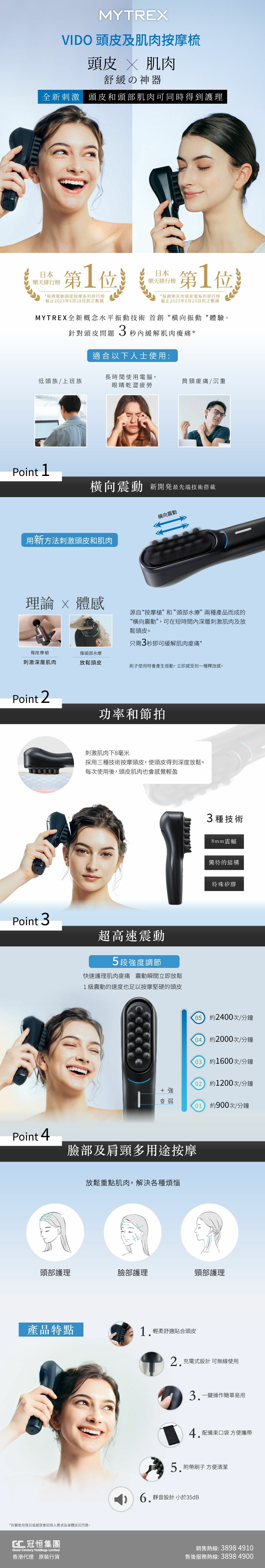 • 適用於頭皮和頭部肌肉僵硬、眼睛過度勞累、頸部和肩部感覺沉重的人