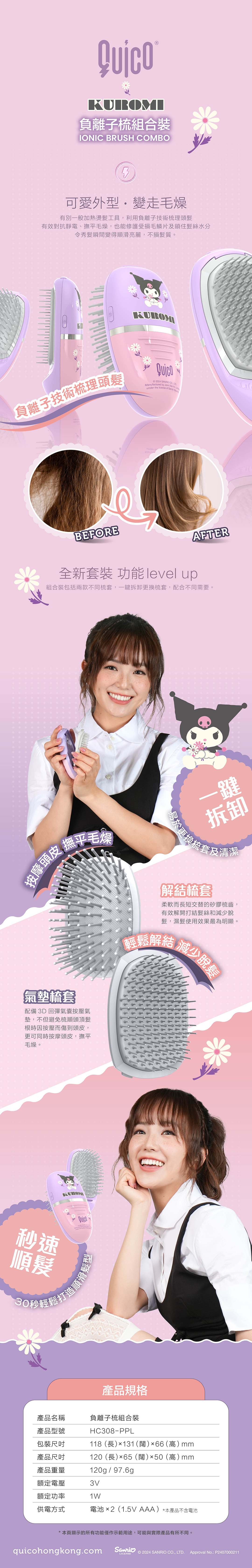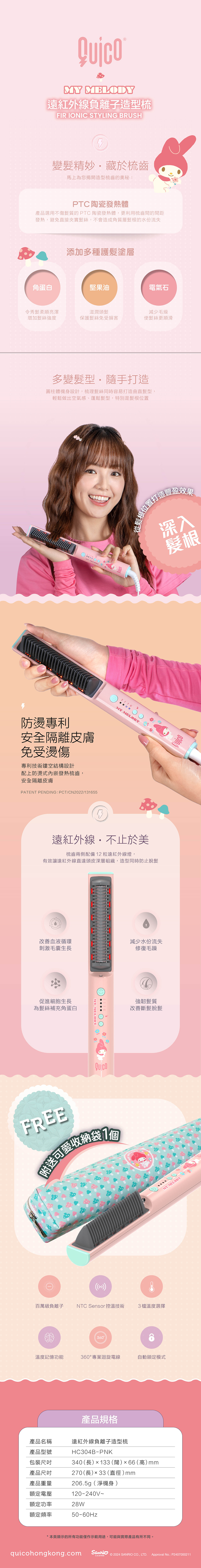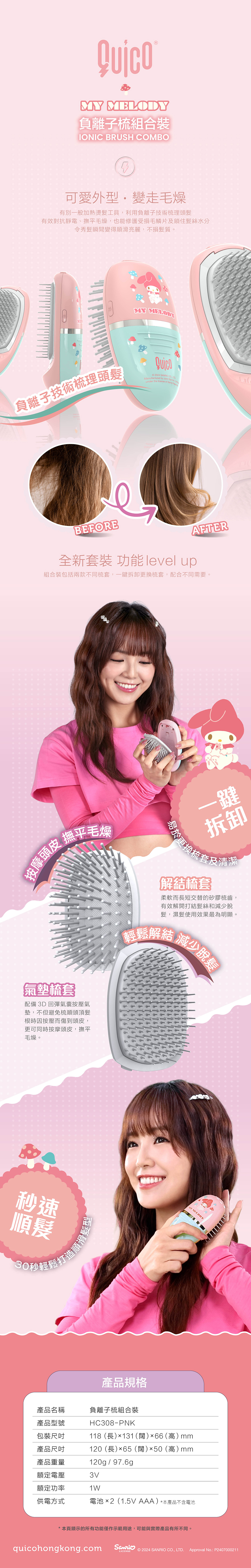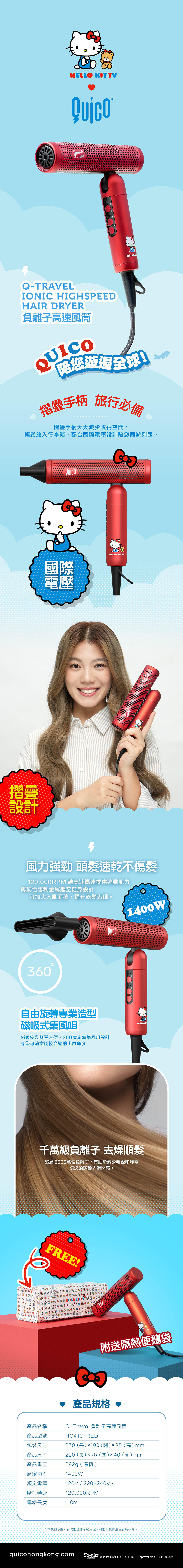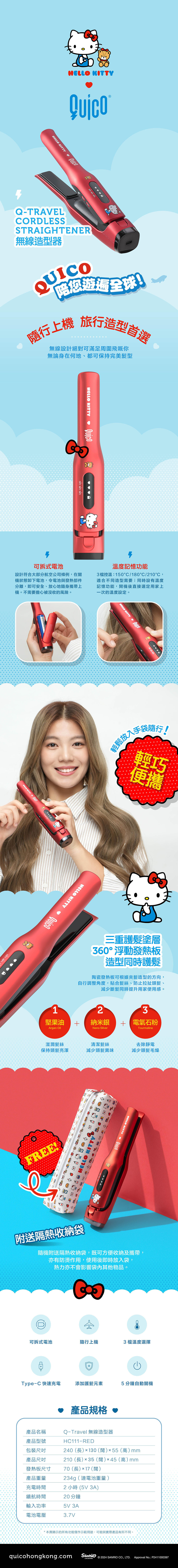 港牌Quico 聯乘Sanrio 同Hello Kitty 一系列嘅負離子梳、輕巧造型器、遠紅外線負離子造型梳以及旅行專用可拆式電池負離子風筒‼️