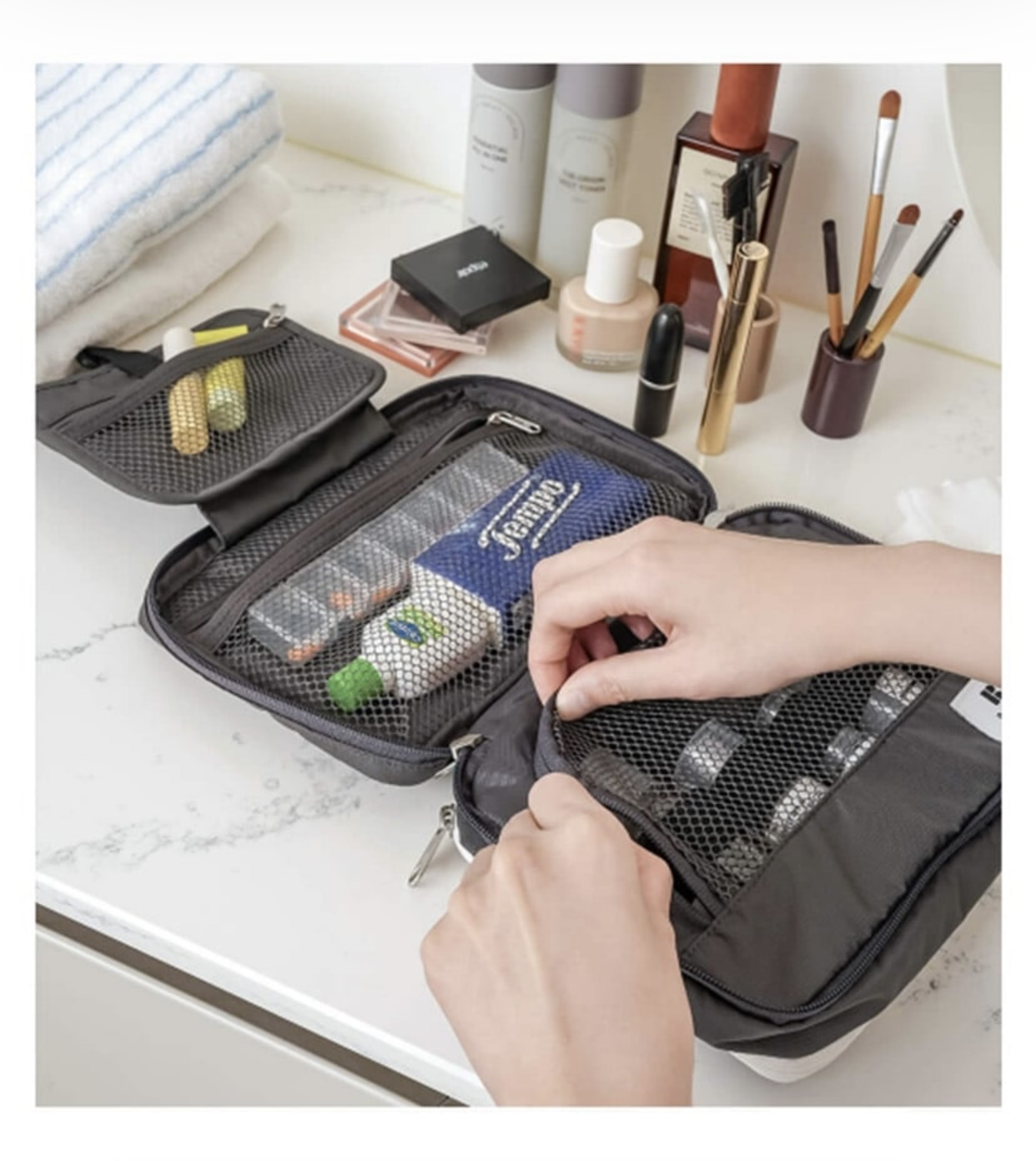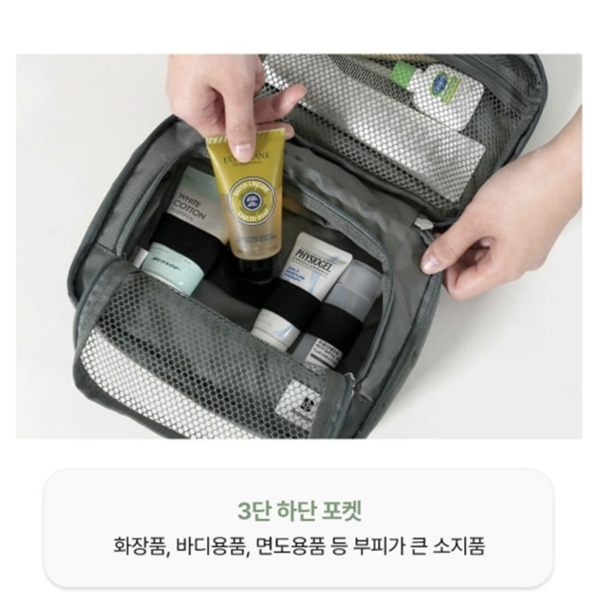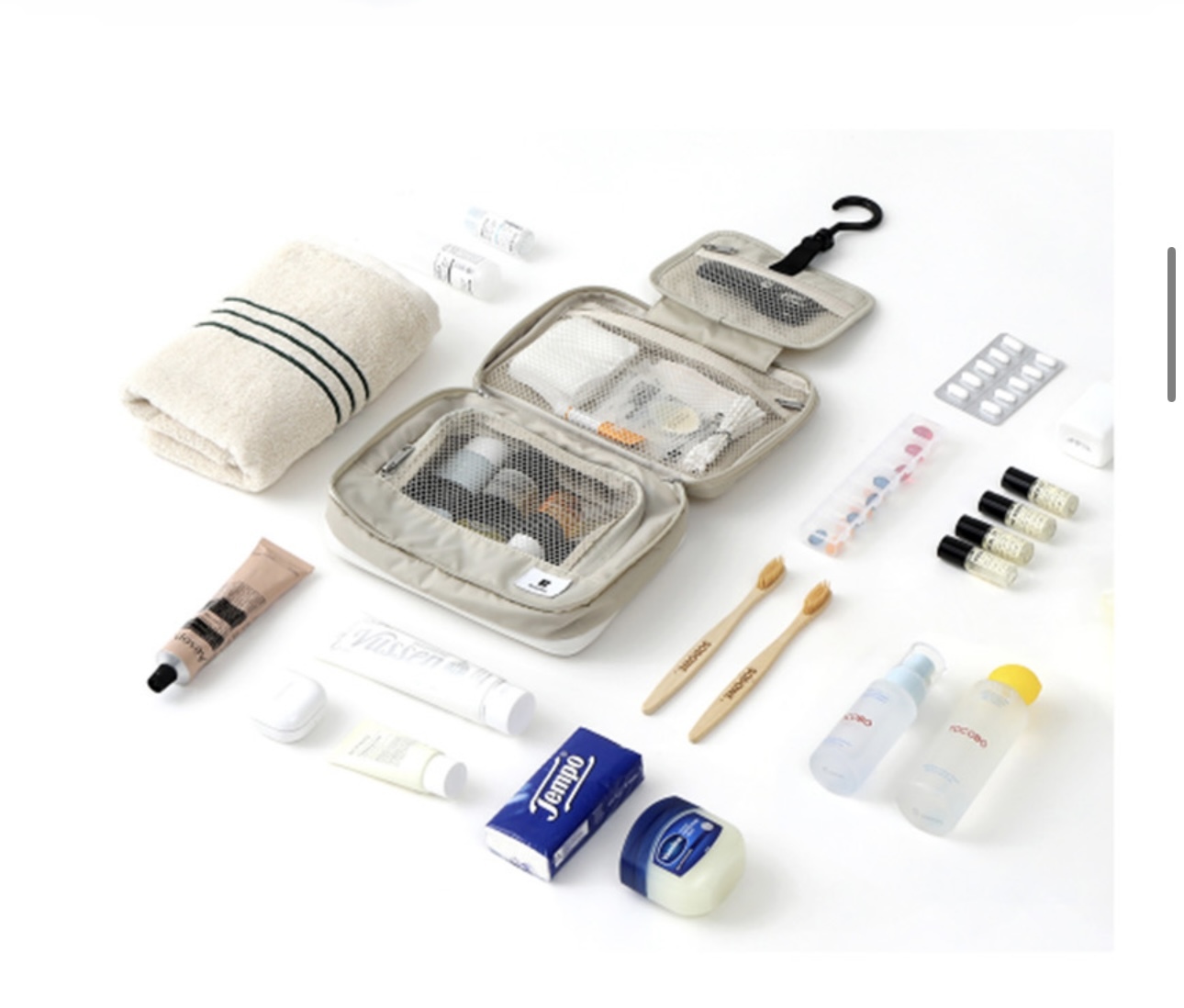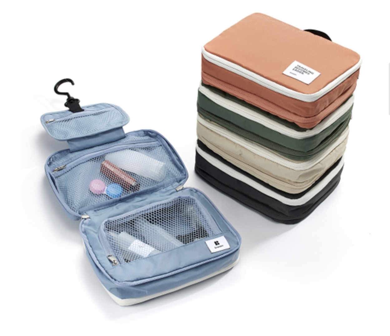 Branden 推出的旅行懸掛式洗漱袋(Branden Expandable Hanging Wash Bag)是一款專為旅行設計、可擴展容量的收納包,具有防水和三層折疊結構,方便整理各種洗漱用品。它提供米色、綠色和炭灰色三種顏色選擇。