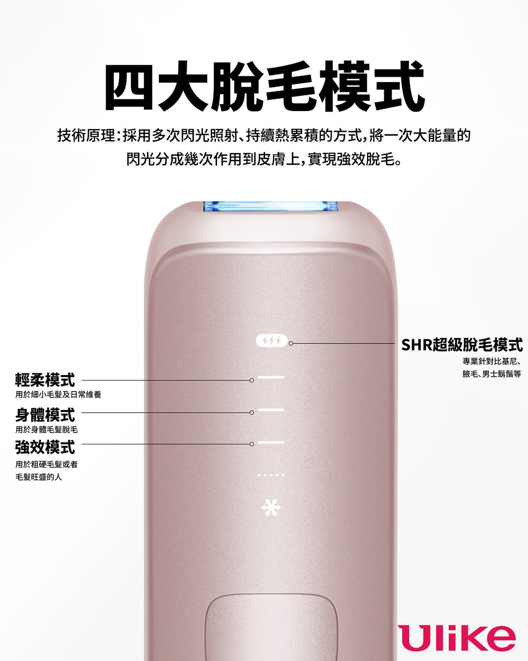 🔹 全新 SHR 模式 — 脫毛速度提升 100%,快速又高效,忙碌生活都能輕鬆安排脫毛時光。