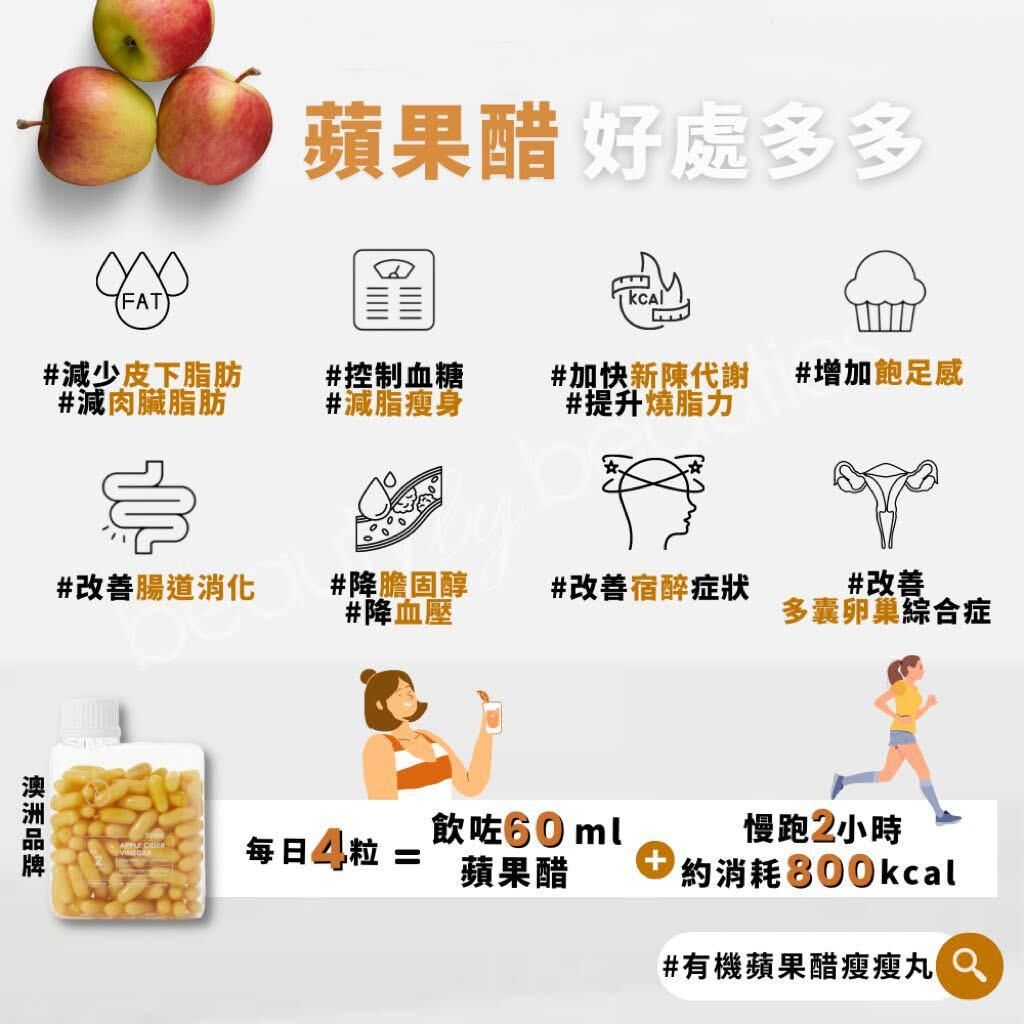 有機蘋果醋膠囊含有多種健康益處,可幫助解決幾乎所有問題: