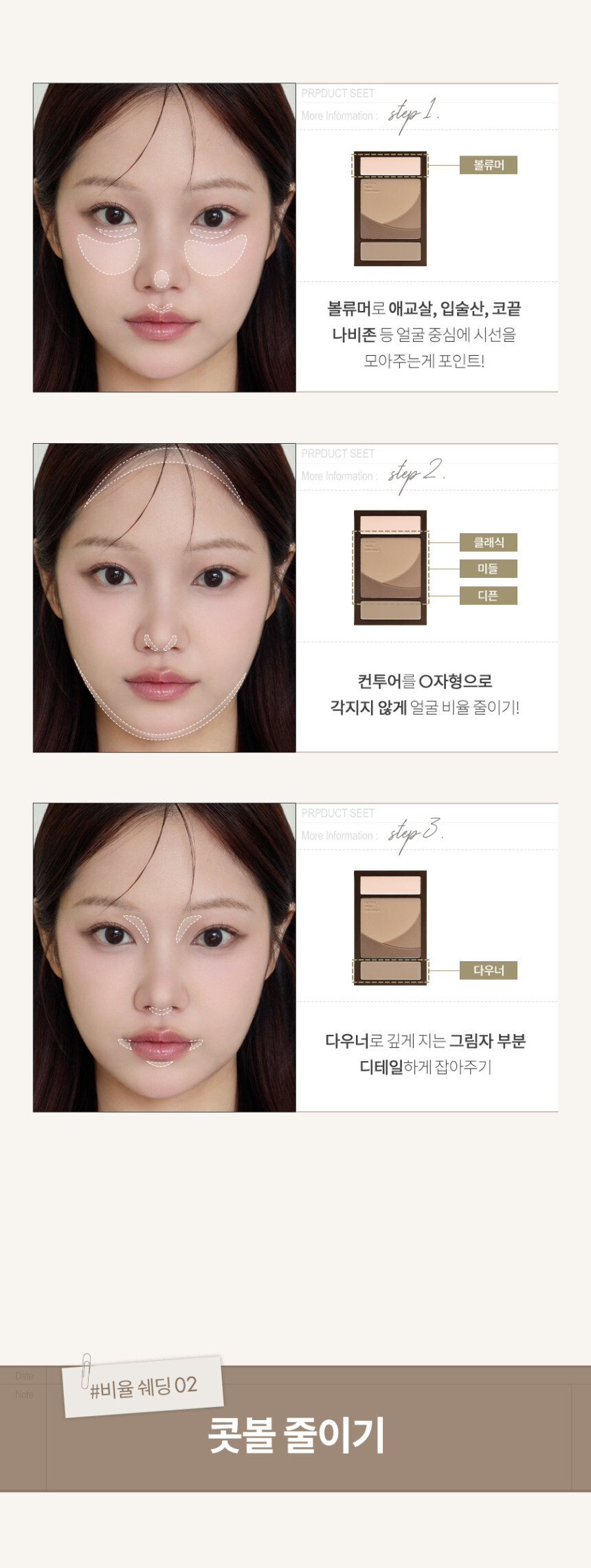 多功能設計:一盤即可搞定全面輪廓修飾,包括用於臥蠶、淚溝、眼頭和鼻頭的無閃粉提亮色,以及深淺不同的修容色,用於修飾下顎線、鼻樑和眼窩。