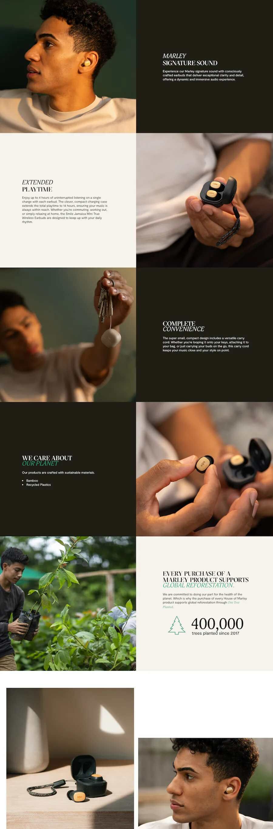 House of Marley 藍牙耳機中最細小的 Smile Jamaica 機身僅 16mm 長,每邊耳機只重 2.77 克,佩戴近乎零負擔😍,耳廓較小的用家都可以舒適使用。耳機雖小,但都有齊品牌標誌性的天然元素及活潑音色,入門耳機首選。