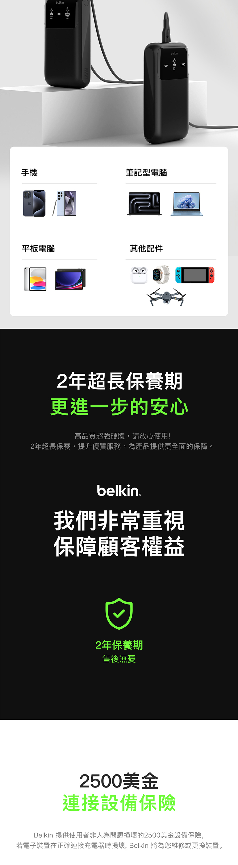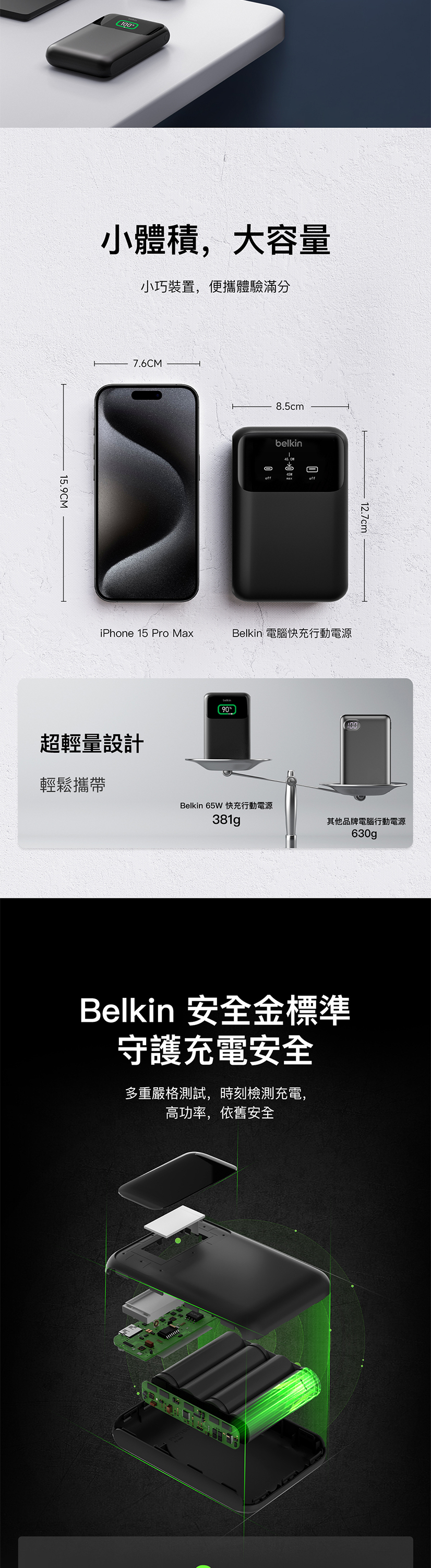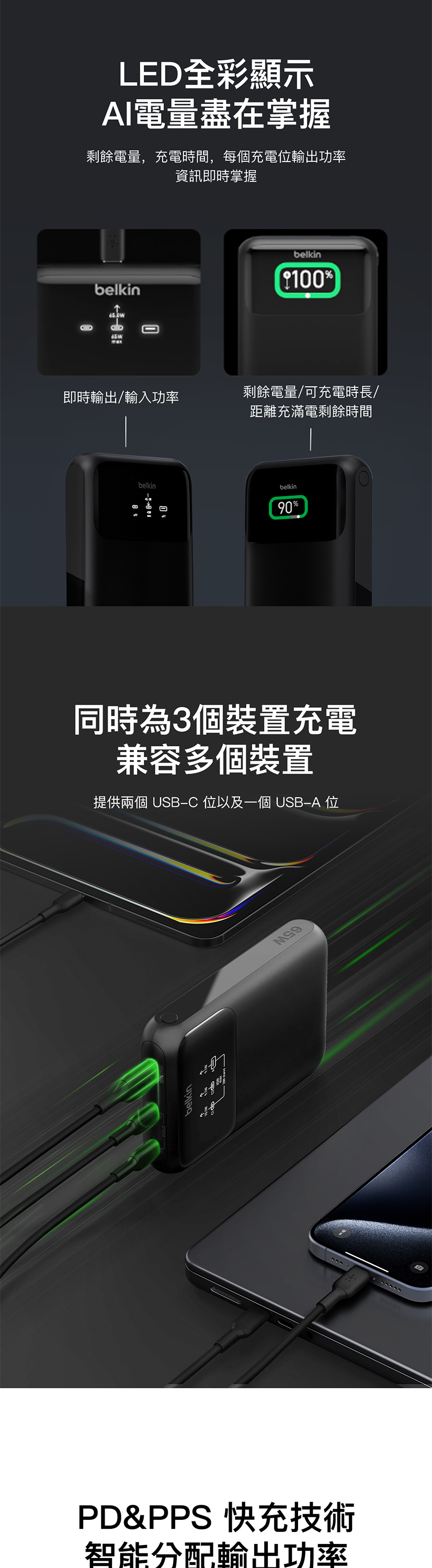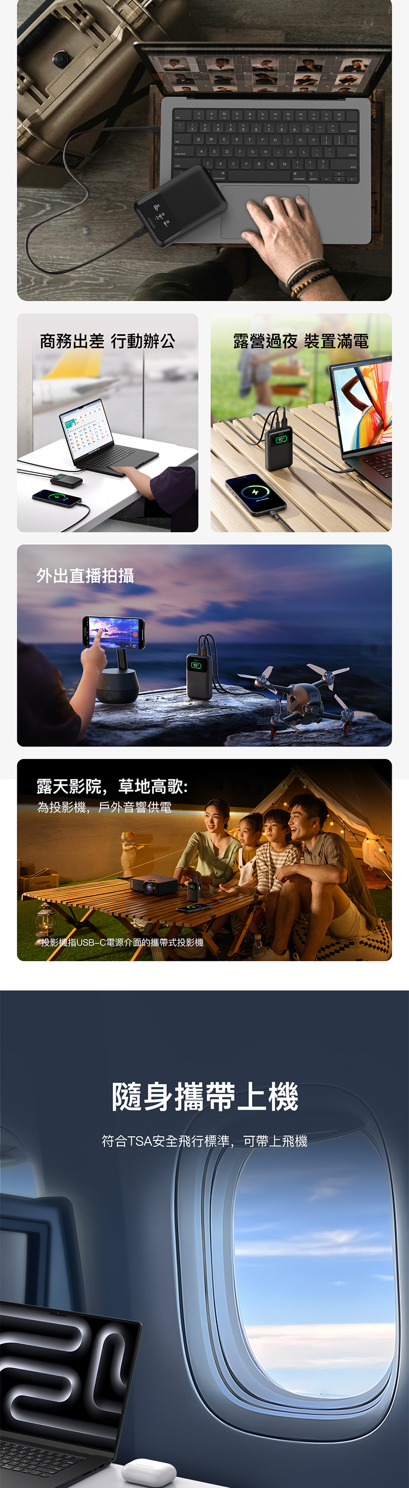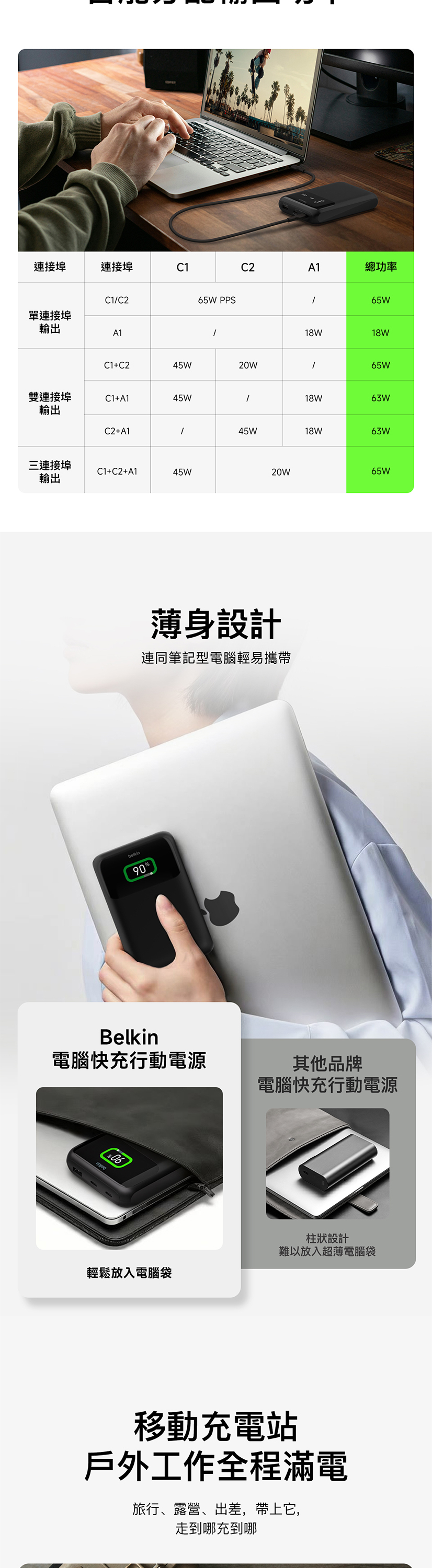 非常適合露營或長途旅行,使用單一USB-C連接埠時,可提供高達65W的快速充電