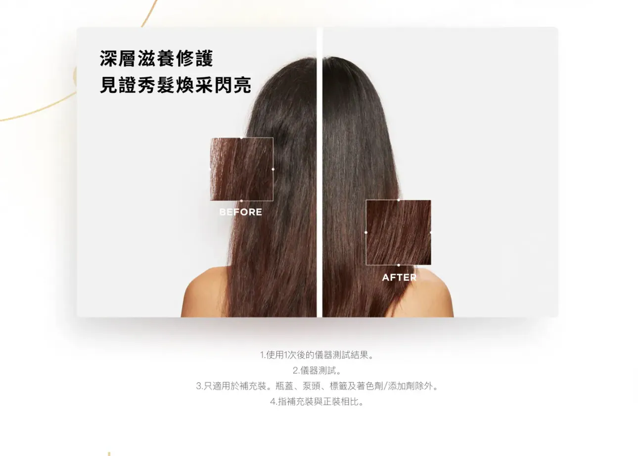 • 頭髮看起來更柔軟、更飽滿、更有彈性和更強壯