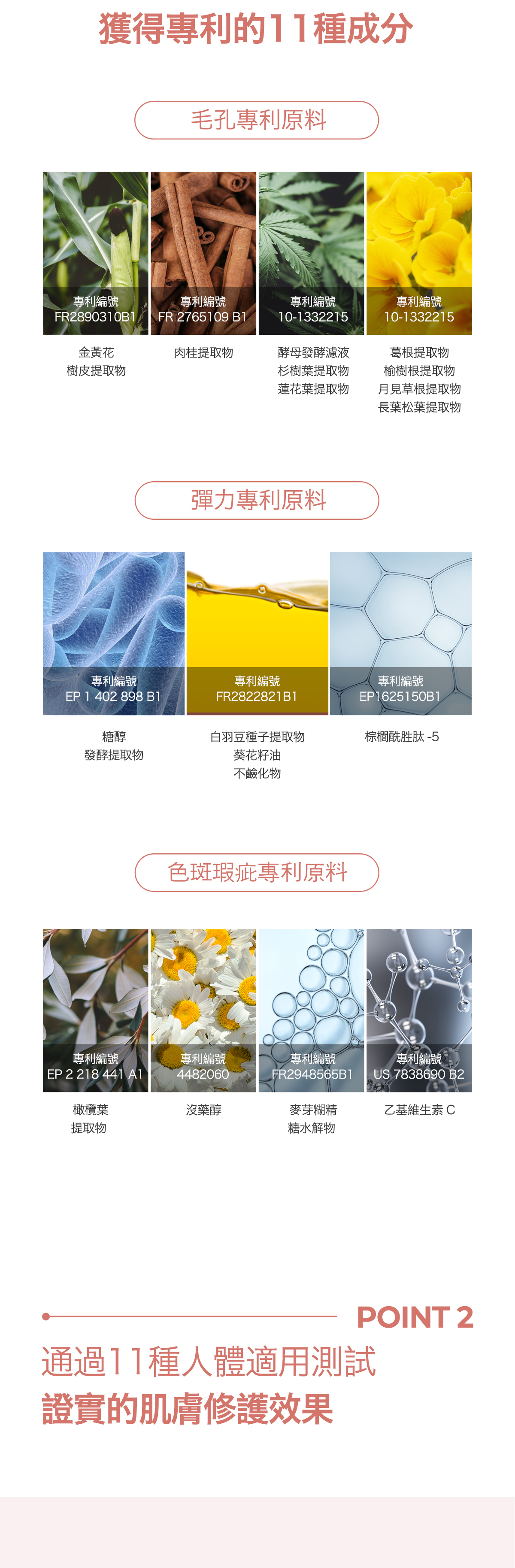 富含彈性蛋白和膠原蛋白,可改善皮膚彈性並治療老化跡象,讓肌膚看起來年輕。含有金粟蘭樹皮和橄欖葉兩款萃取物