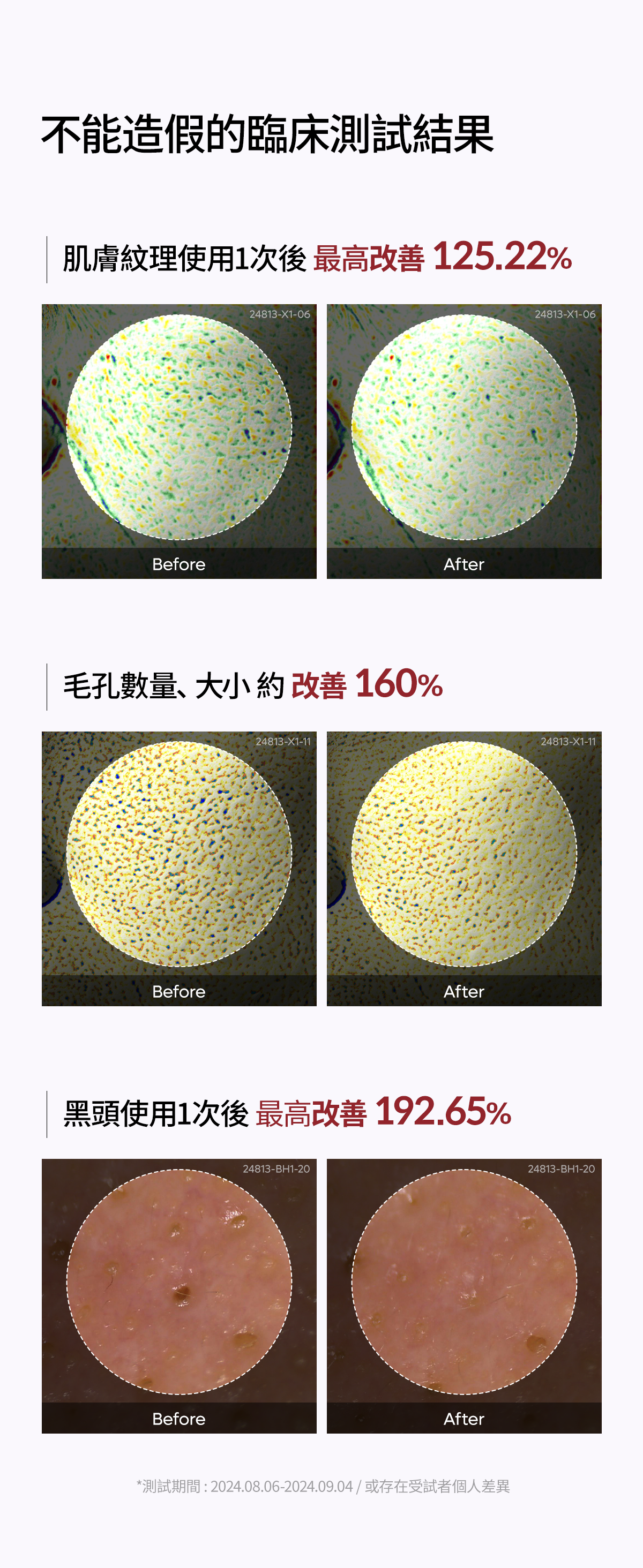 · 完成最高改善 160% 毛孔數量, 大小臨床測試