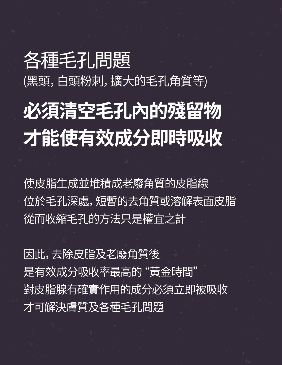 【去角質同時即時吸收 新概念毛孔膚質護理】