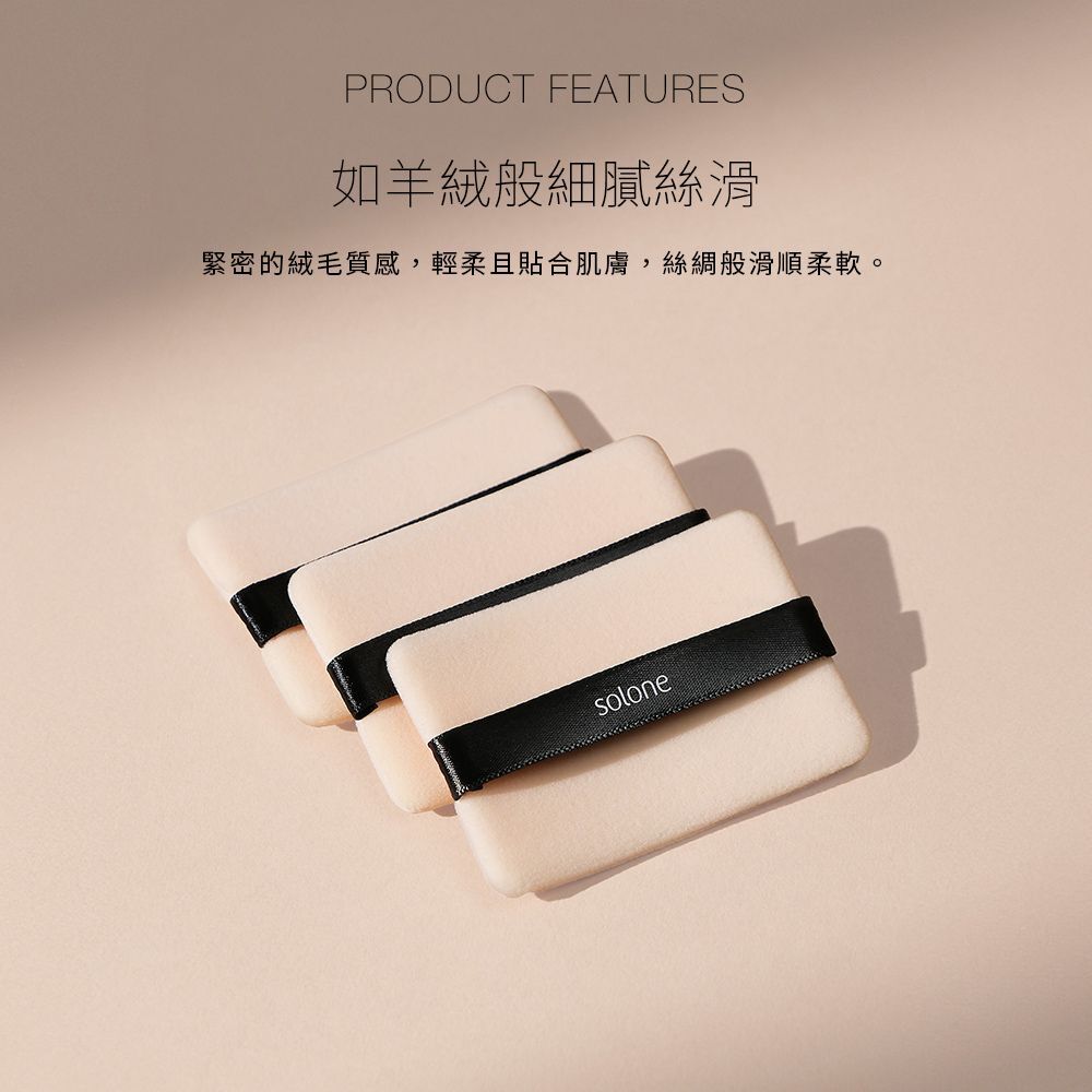 細密絨毛親膚柔軟,如羊絨般細膩絲滑,抓粉、釋粉力佳,均勻上妝,打造柔焦濾鏡般的精緻妝效。