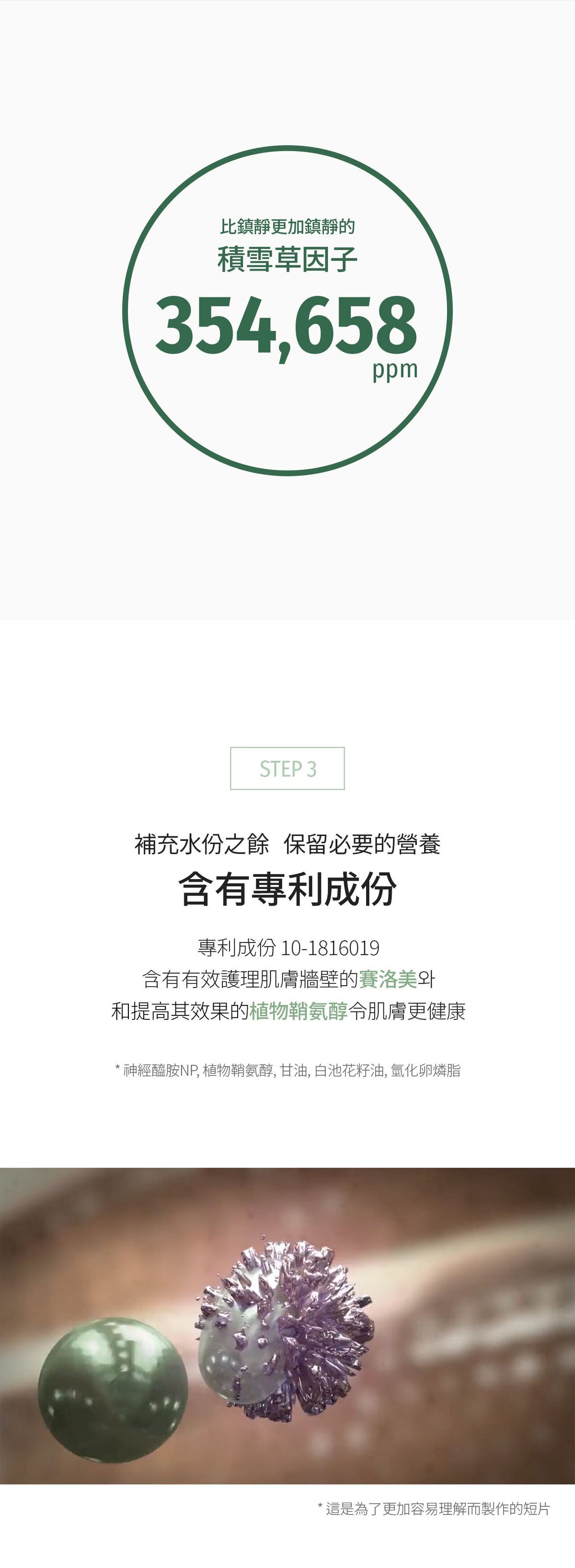 • 含有專利成分「積雪草麥盧卡因子」35%