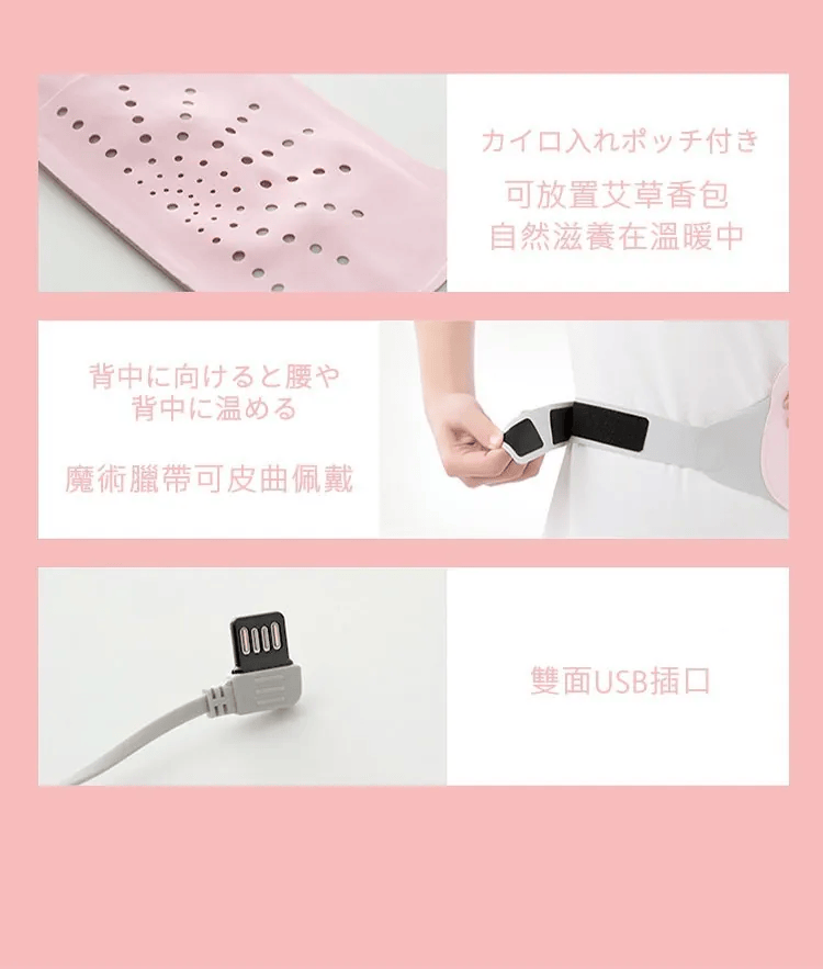 發熱腹帶本體,艾草包x 2 , 自動電源5000毫安,說明書,收納袋