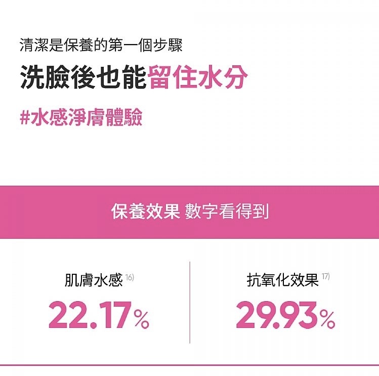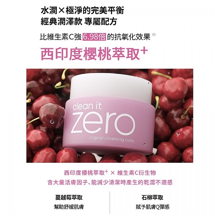 全效合一,含有針葉櫻桃萃取和維他命 C,主打卸妝