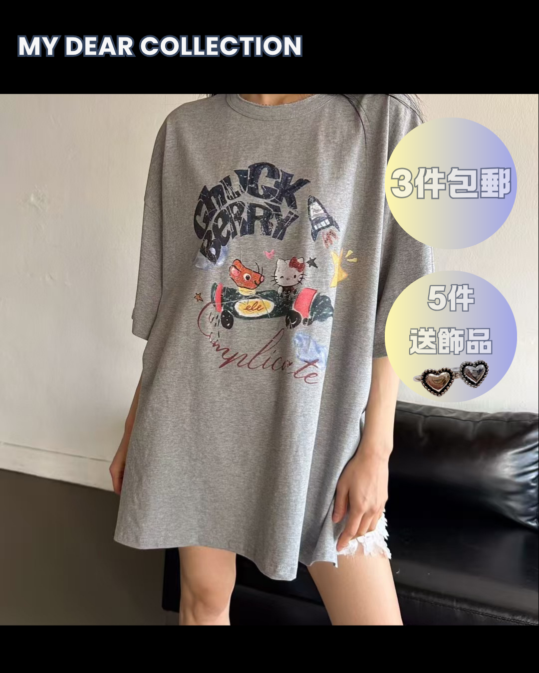 預 購 產 品 丨韓國女裝 -新款復古感卡通印花寛鬆短袖T恤 Made In Korea( 預計兩星期後發貨 )
