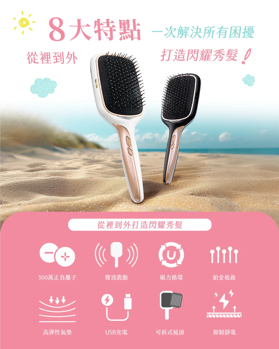 ✨6600次聲波震動 解決秀髮打結只需一秒