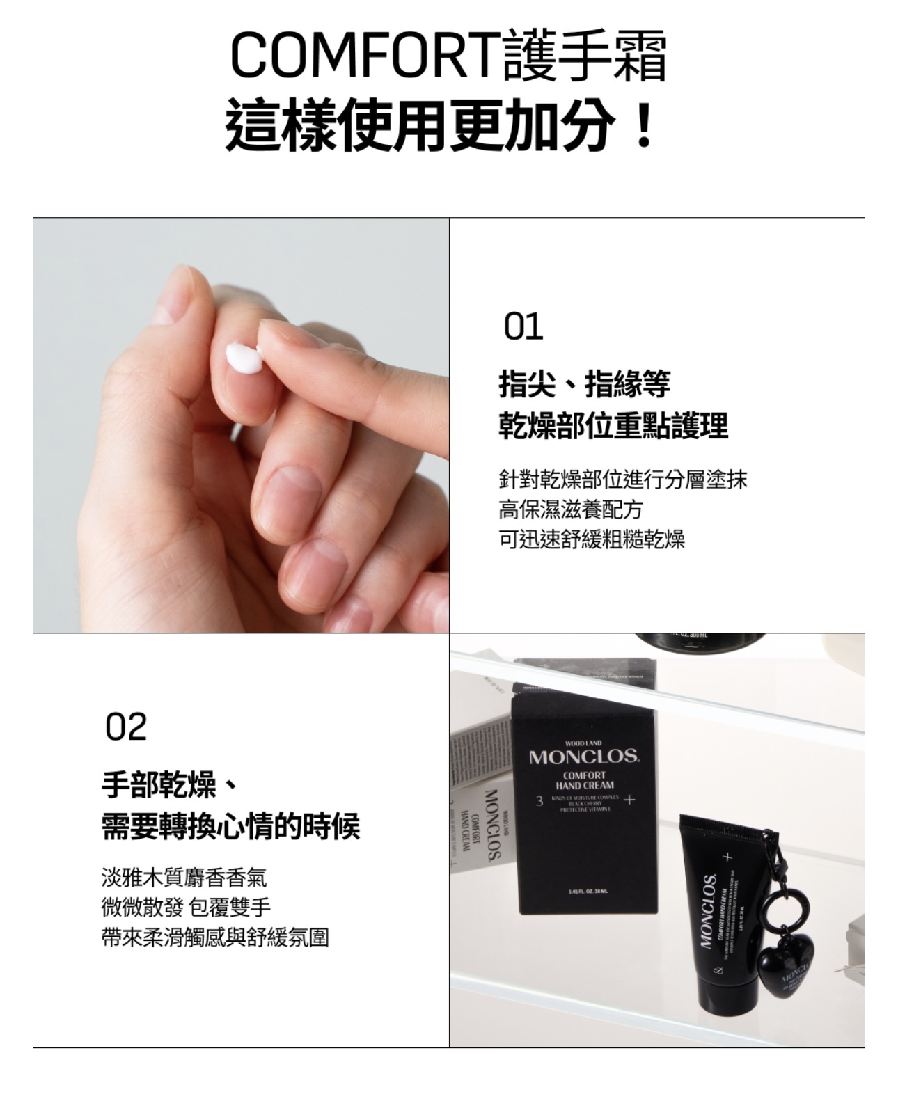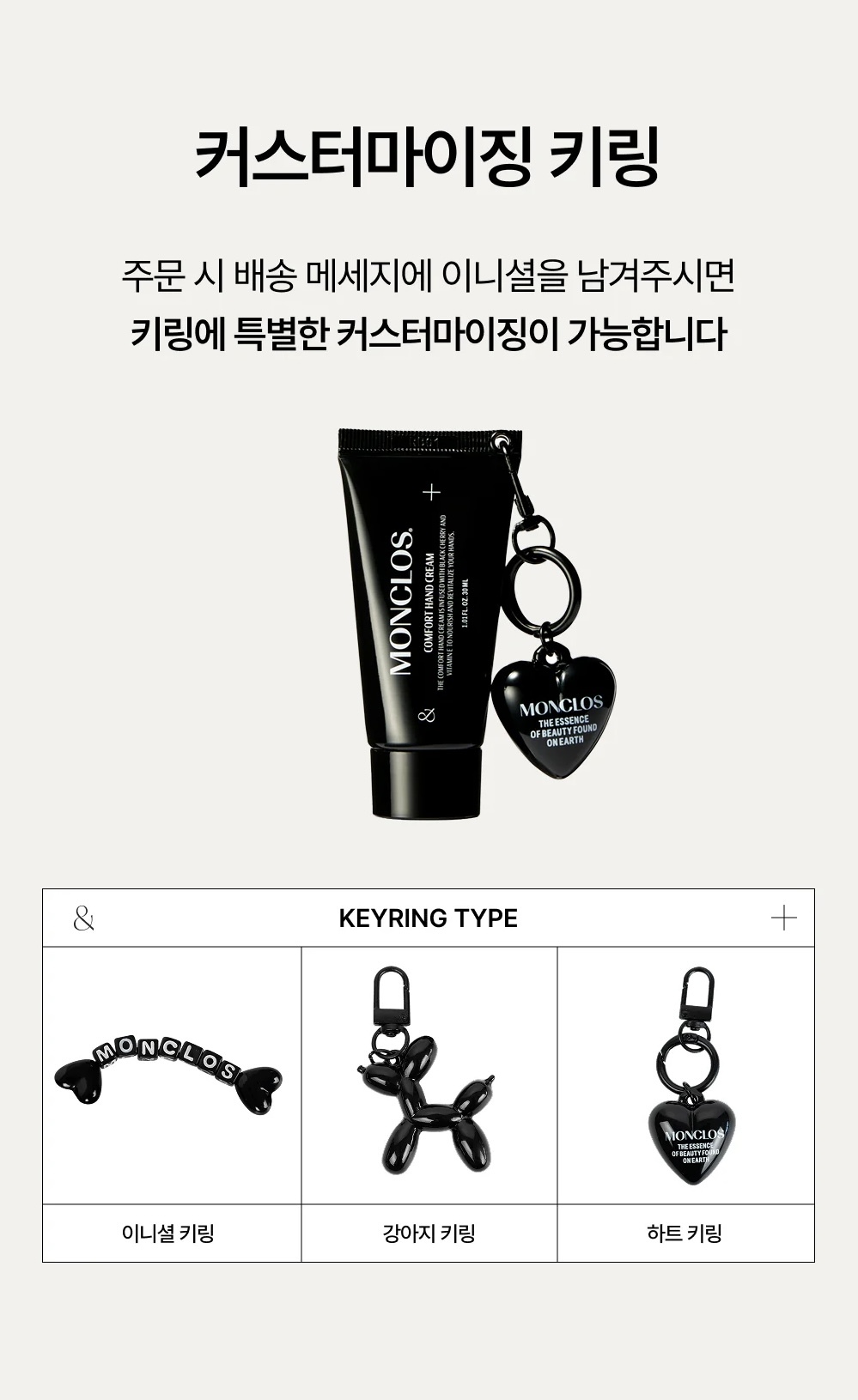 MONCLOS 訂製字母鑰匙扣護手霜不只是一款護手霜,它更是一份能觸動心弦、充滿情感與專屬意義的個人化禮物。它將日常的護膚步驟轉化為一份隨身攜帶的溫柔提醒,讓你在滋潤雙手的同時,感受到那份獨一無二的關懷與愛。