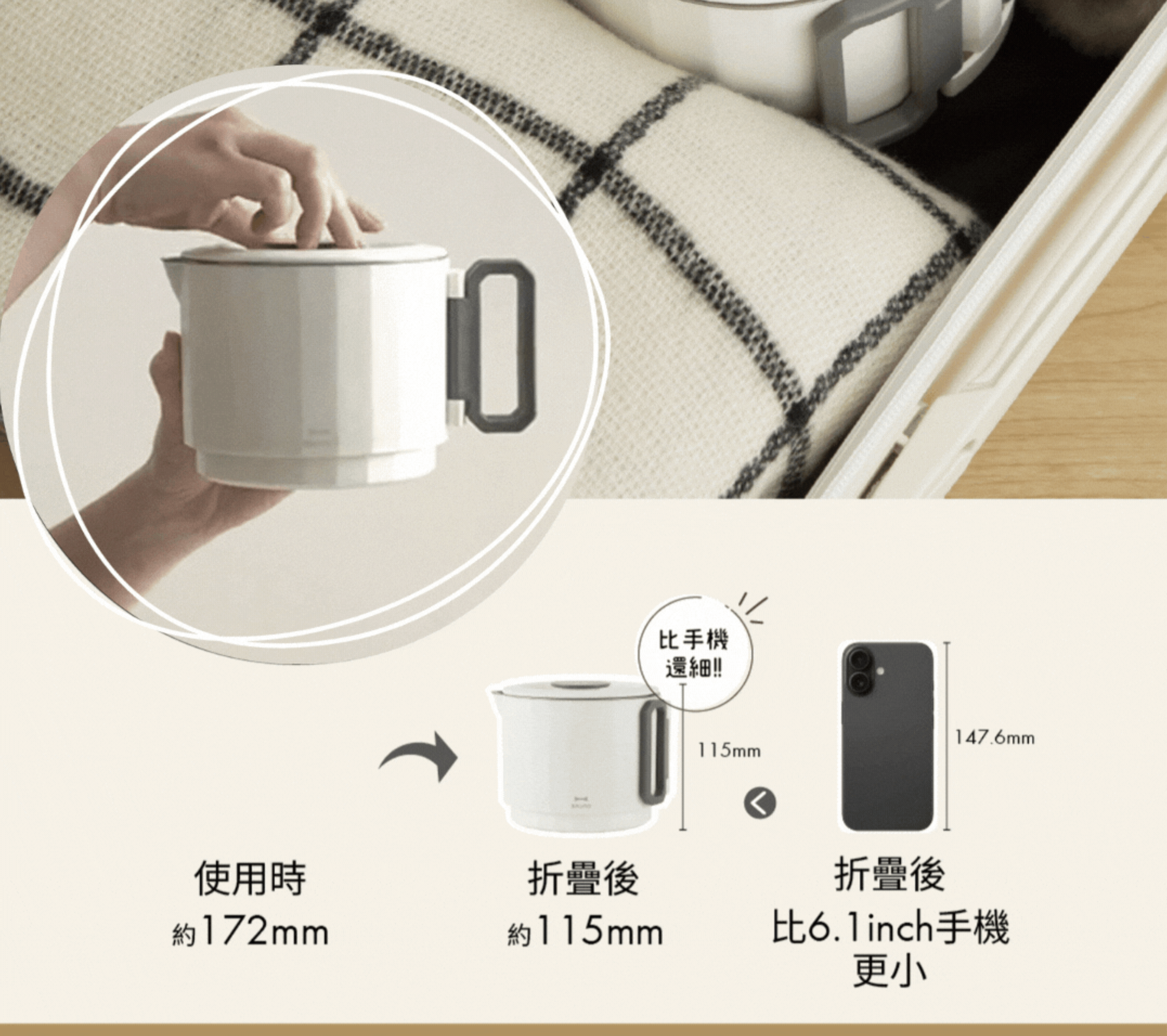 極致輕巧 860g 的折疊式收納設計(直徑14.8厘米 x 11.5厘米)