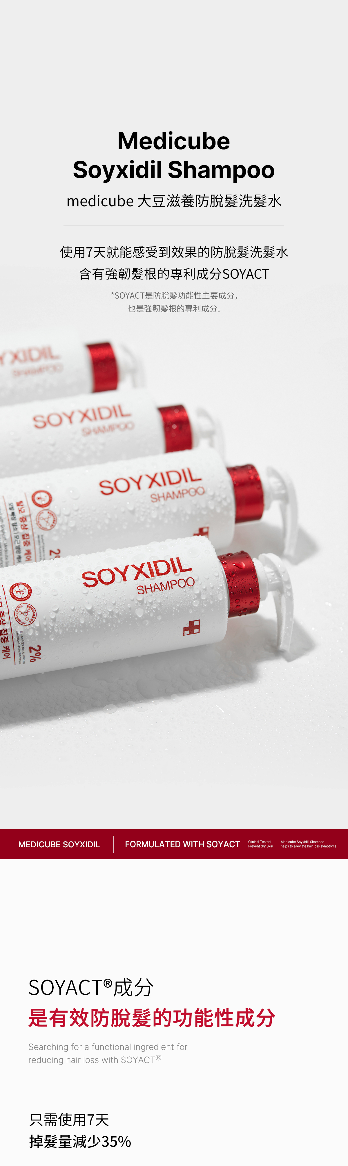 SOYXIDIL LINE 獲得SoyAct專利成分養護頭皮髮絲,滋養頭皮毛孔,平衡油脂分泌,養護濃密秀髮。