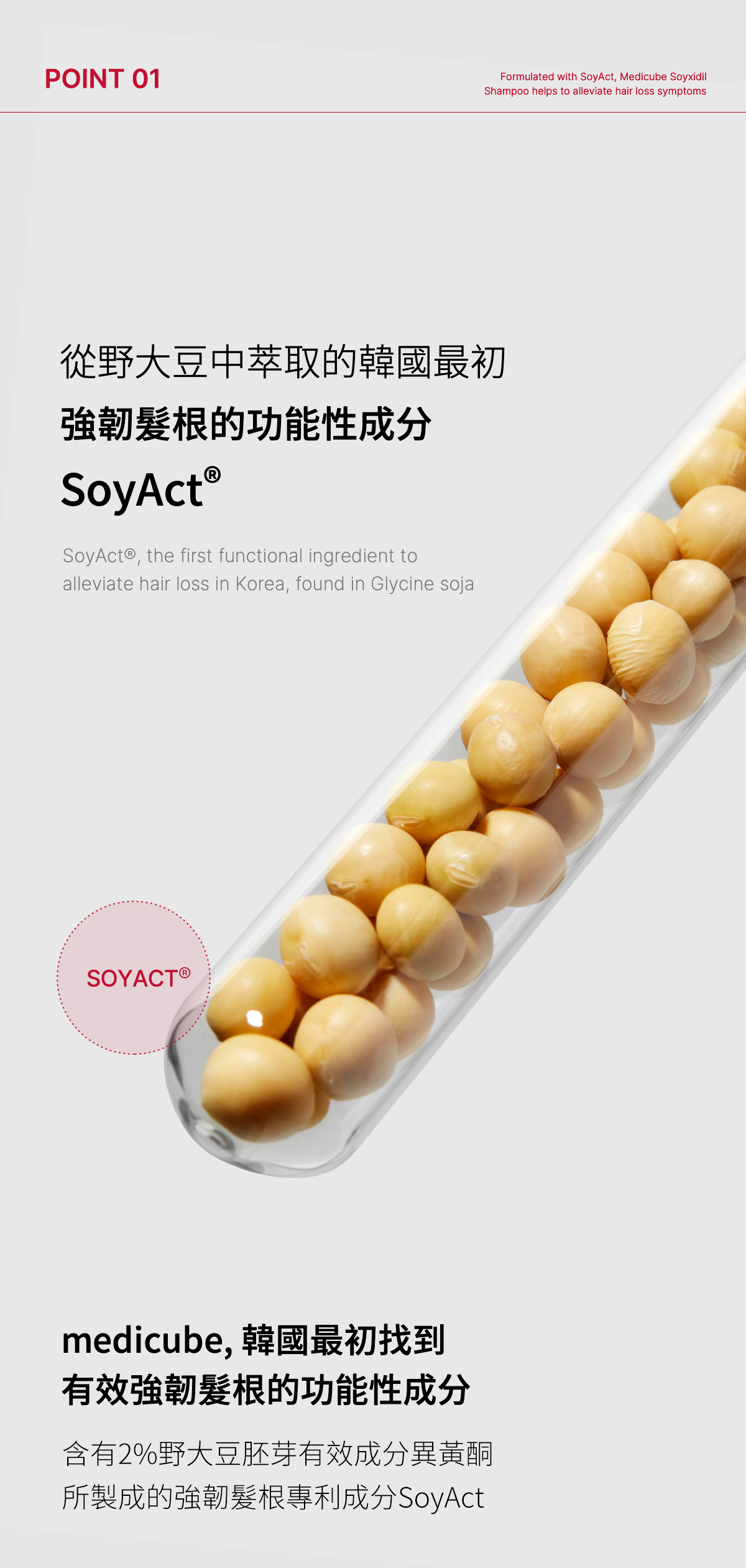 ❤採用韓國首創以2%野大豆胚芽萃取物的強化髮根功能性成分SoyAct®️