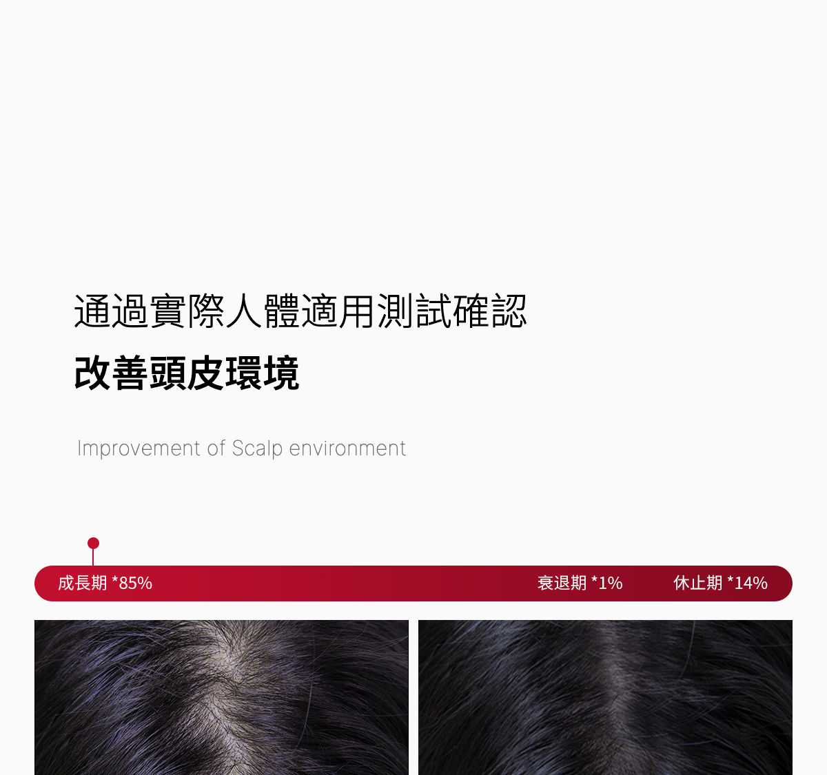 用後髮質比以前強靱富光澤,延長頭髮生長期,斷髮情況明顯減少