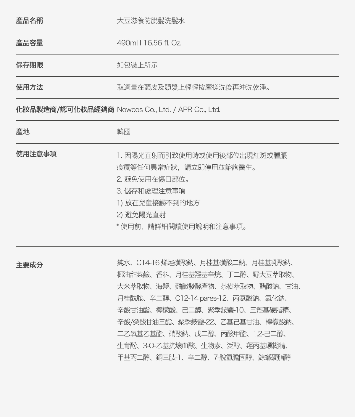 ✓ 無矽防敏洗髮水内含天然大豆成分有助強韌髮根