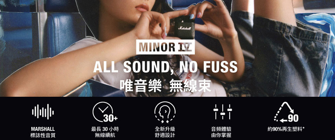 Minor IV 為你帶來 Marshall 的標誌性聲音,無擾沉浸於音樂之中,耳緊貼耳部,提升聲學表現,全天佩戴舒適。