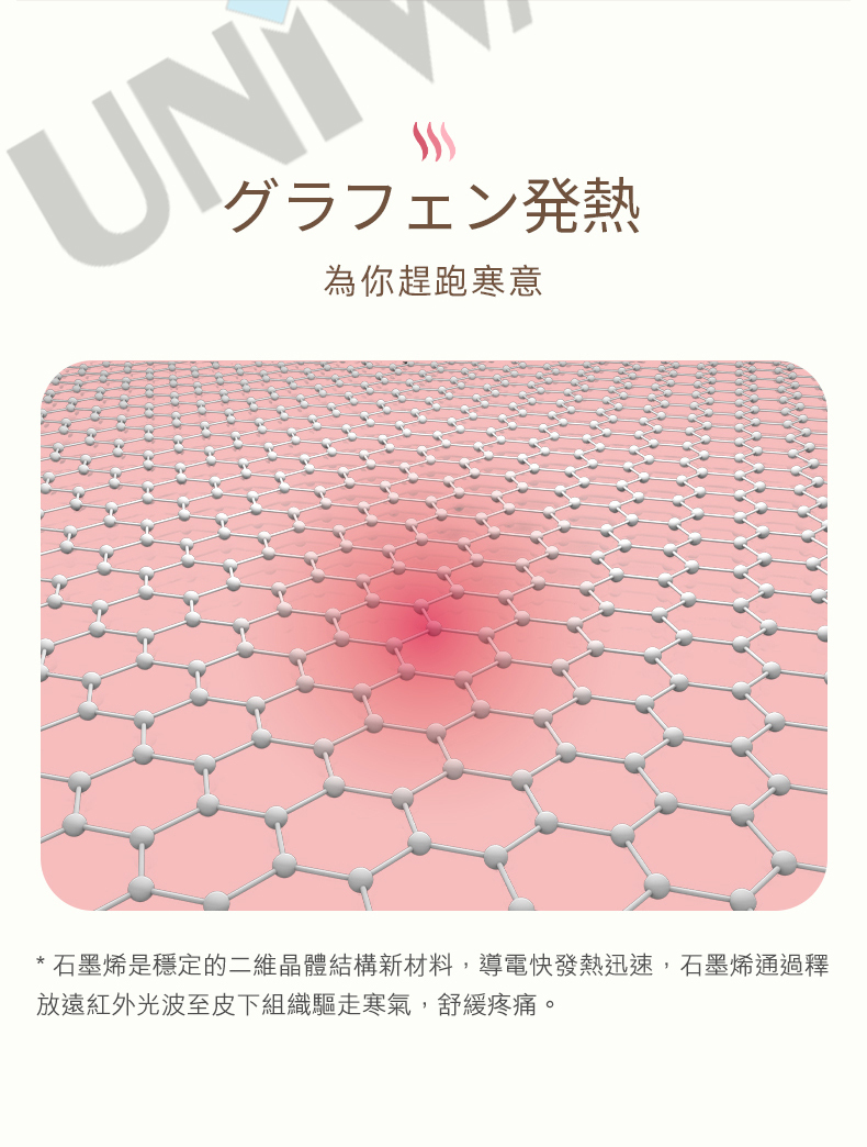 石墨烯通過釋放遠紅外光波至皮下組織,驅走寒氣,舒緩疼痛