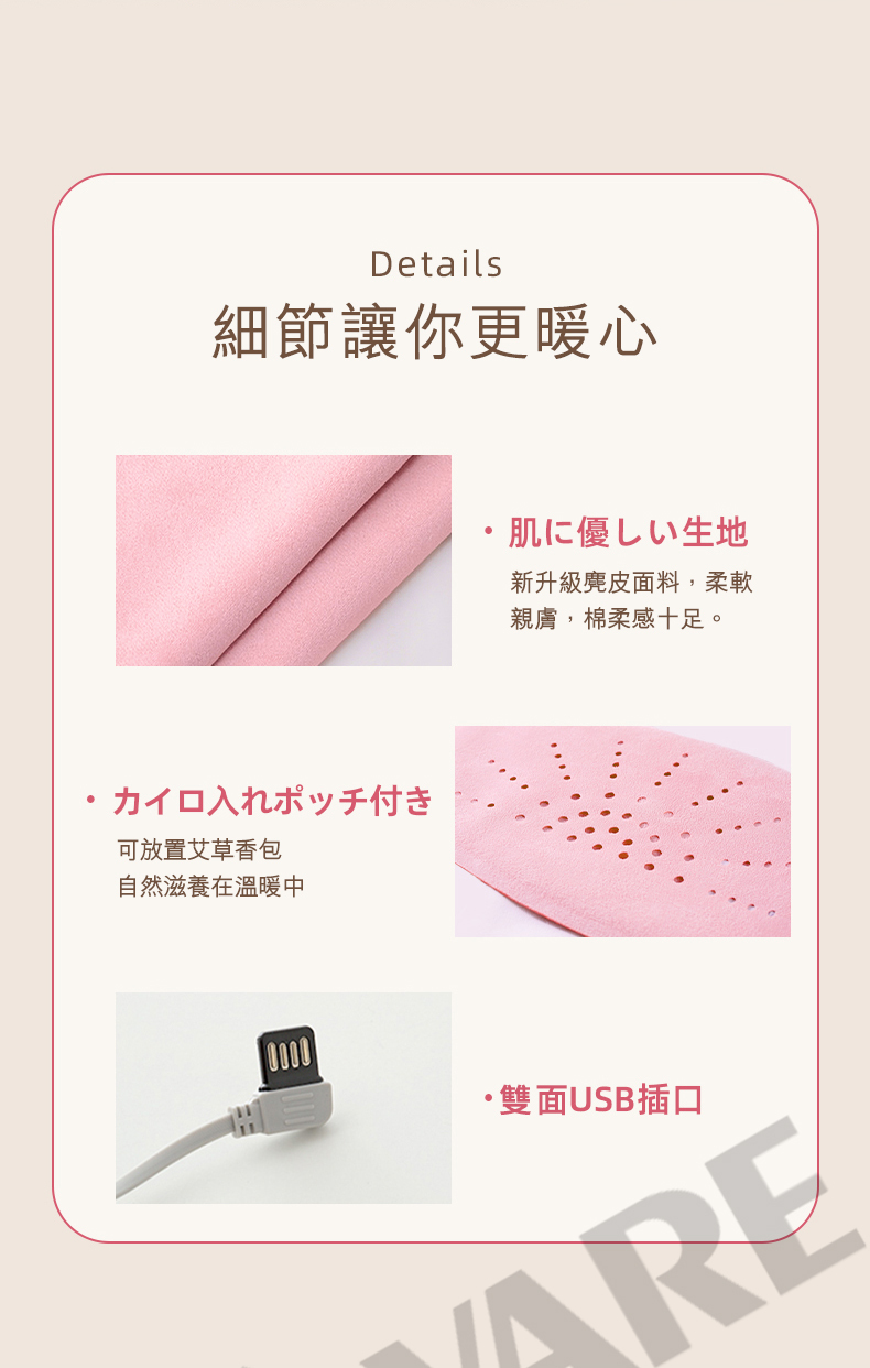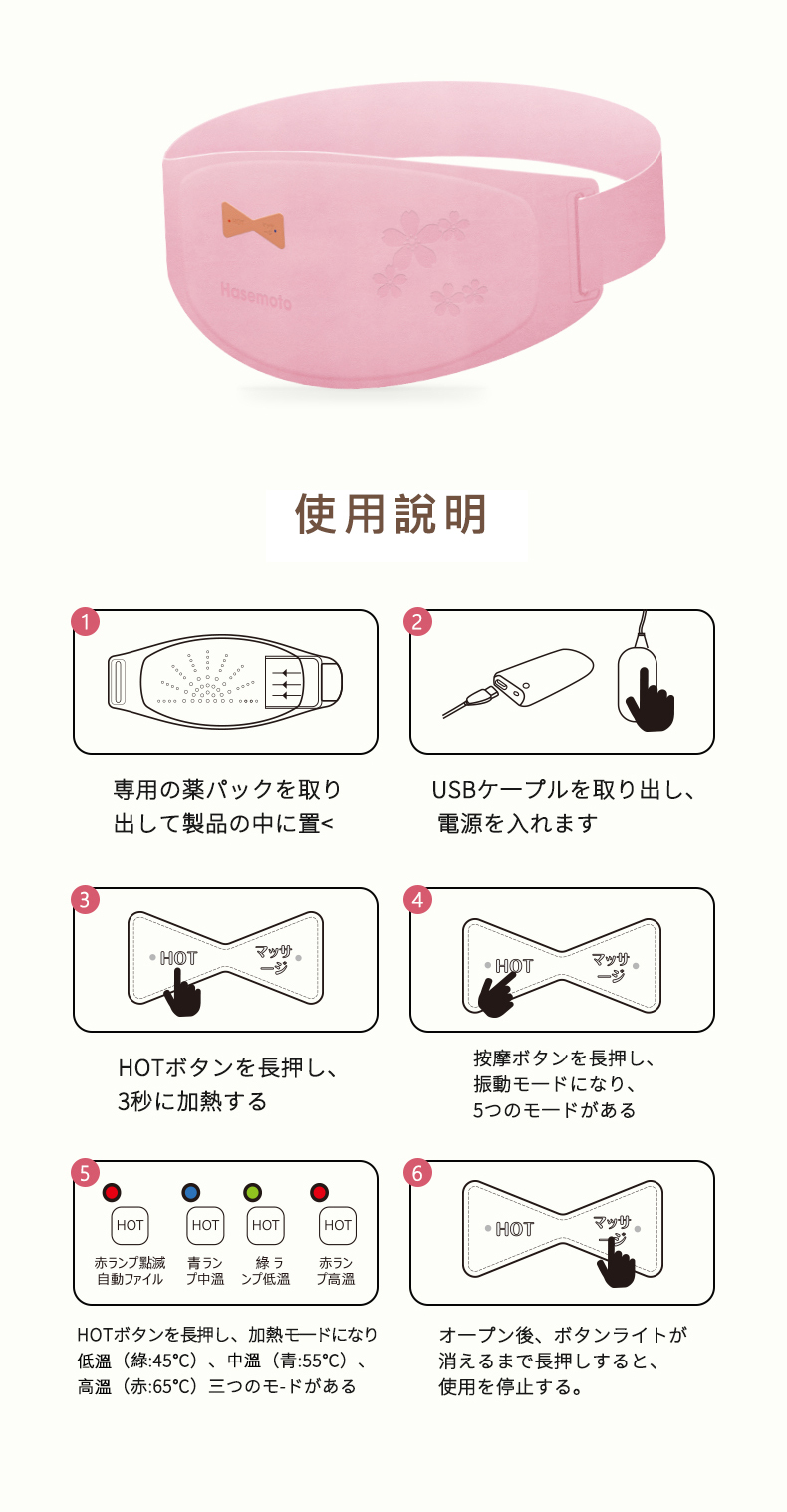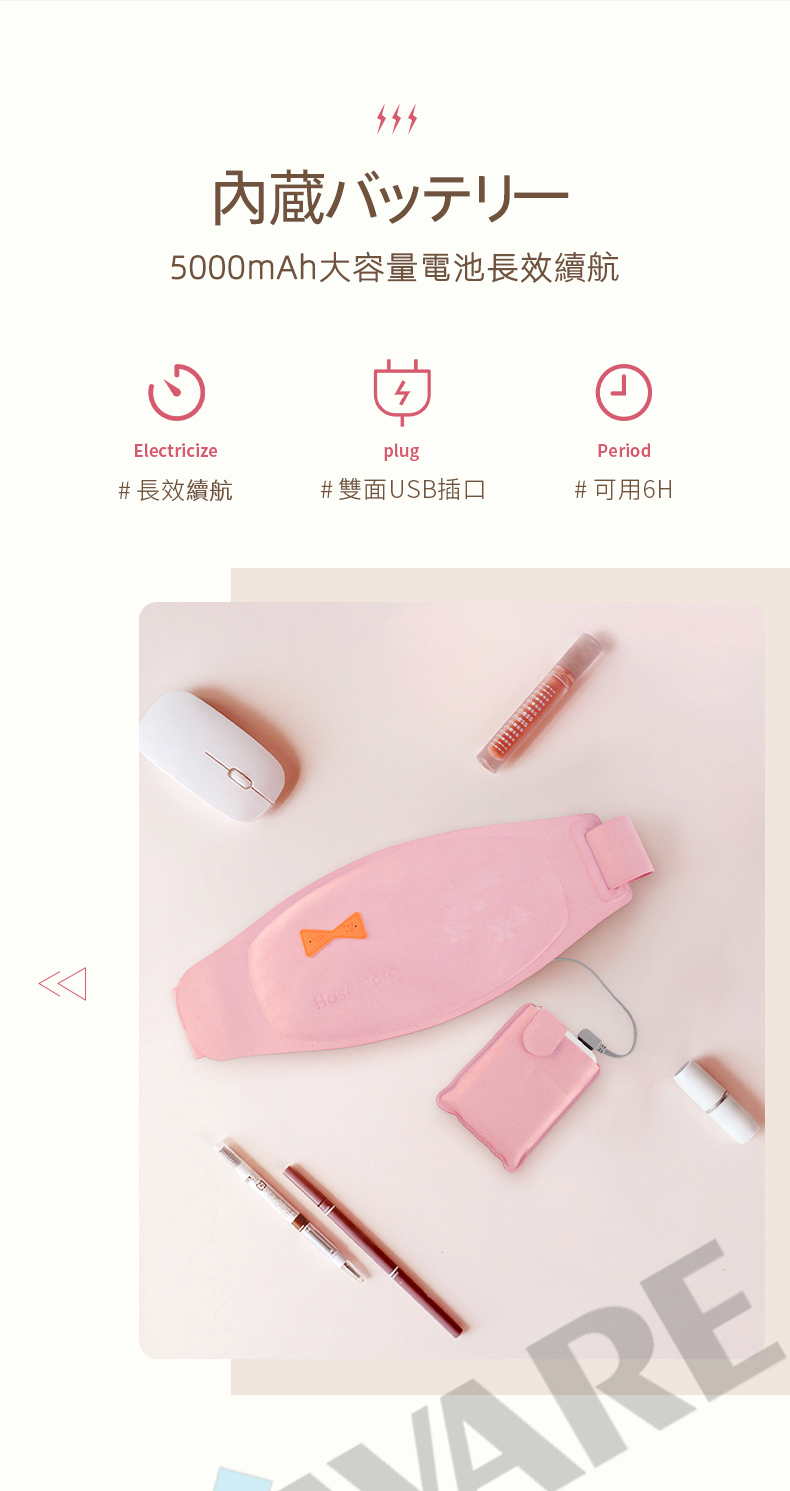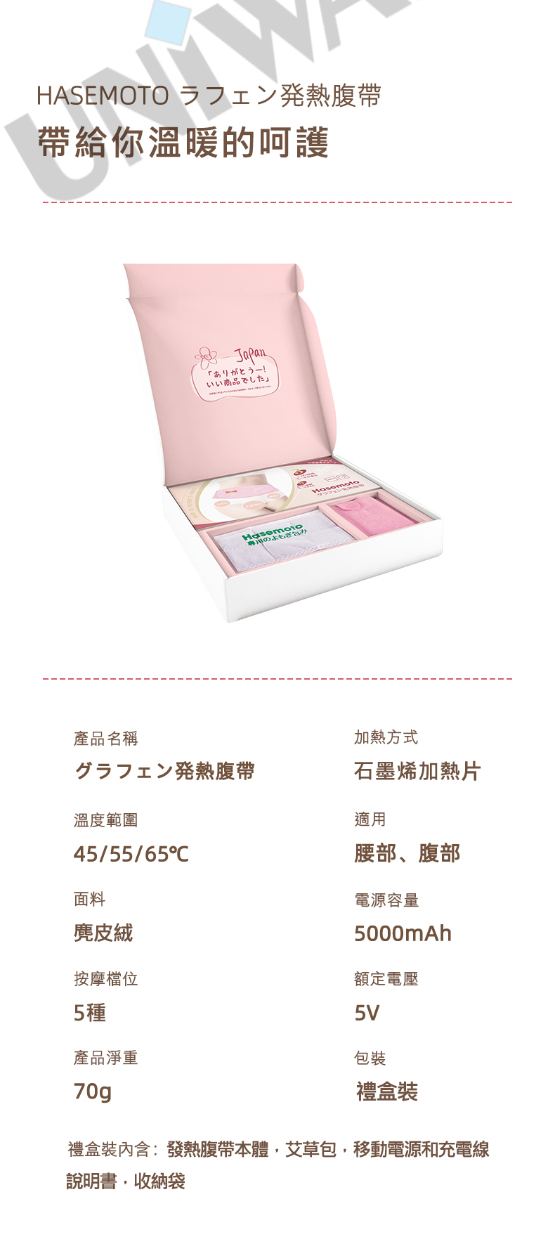 包裝內容:發熱腹帶本體、艾草包、移動電源、充電線、說明書、收納袋